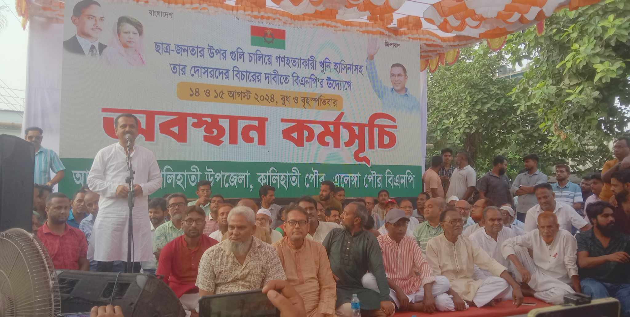 কালিহাতীতে বিএনপির দুইদিন ব্যাপী অবস্থান কর্মসূচি পালন (টাঙ্গাইল)প্রতিনিধি: ছাত্র-জনতার উপর গুলি, গণহত্যাকারী খুনি সাবেক প্রধানমন্ত্রী শেখ হাসিনা ও তার দোসরদের