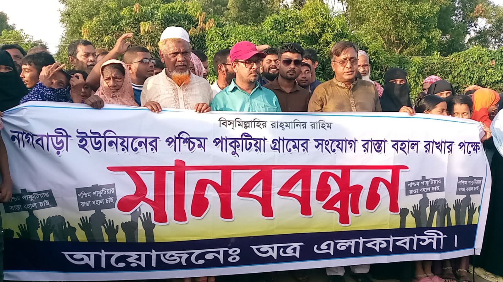 কালিহাতীর পশ্চিম পাকুটিয়ায় রাস্তার দাবিতে এলাকাবাসীর মানব বন্ধন