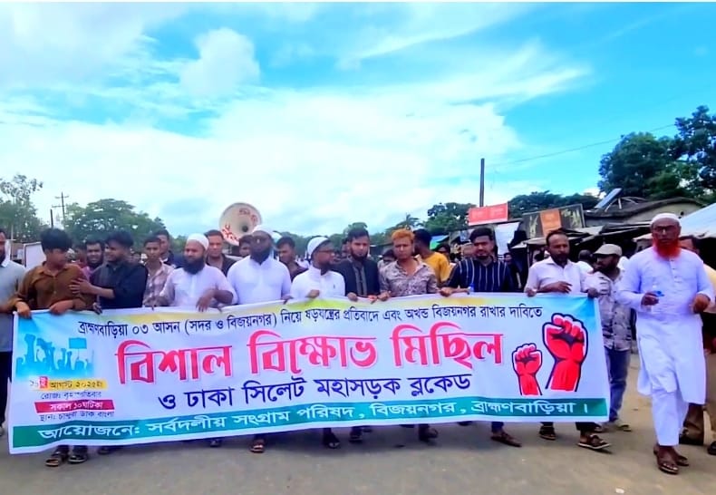 বিজয়নগরে মহাসড়ক অবরোধ করে এলাকাবাসীর বিক্ষোভ।